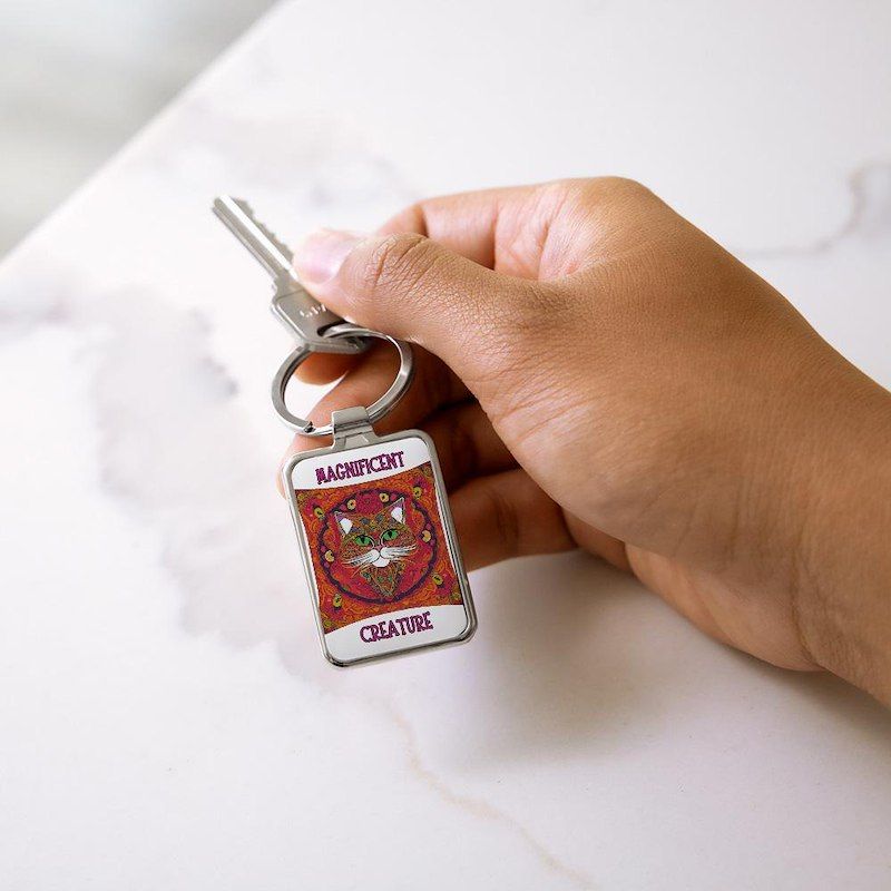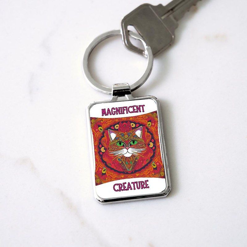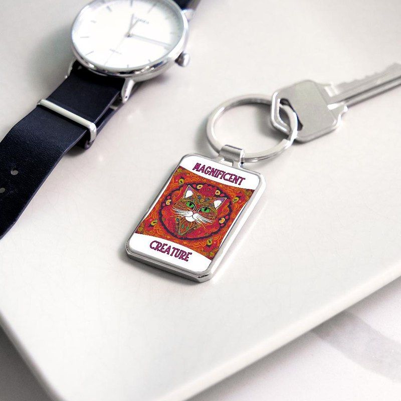 Beautiful, Colorful, Bohemian Cat Rectangle Keychain